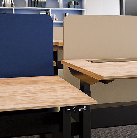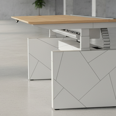 Smooth electric lift with memory presets, anti-collision safety, and low-noise motor; reinforced columns support up to 800 N. Modular, sensor-integrated design with energy-efficient control and plug-and-play setup for flexible workspaces.