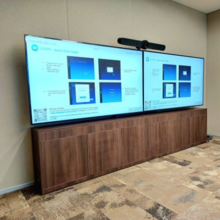 A modern credenza that seamlessly integrates power, storage, and smart connectivity.